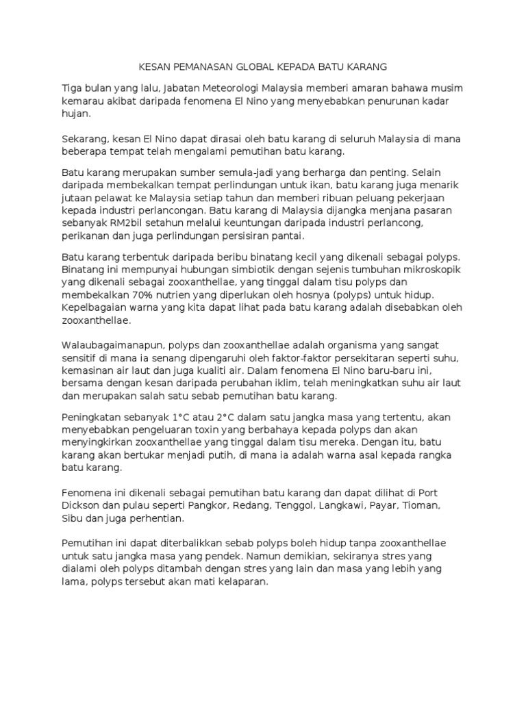 Kesan Pemanasan Global Kepada Batu Karang Pdf